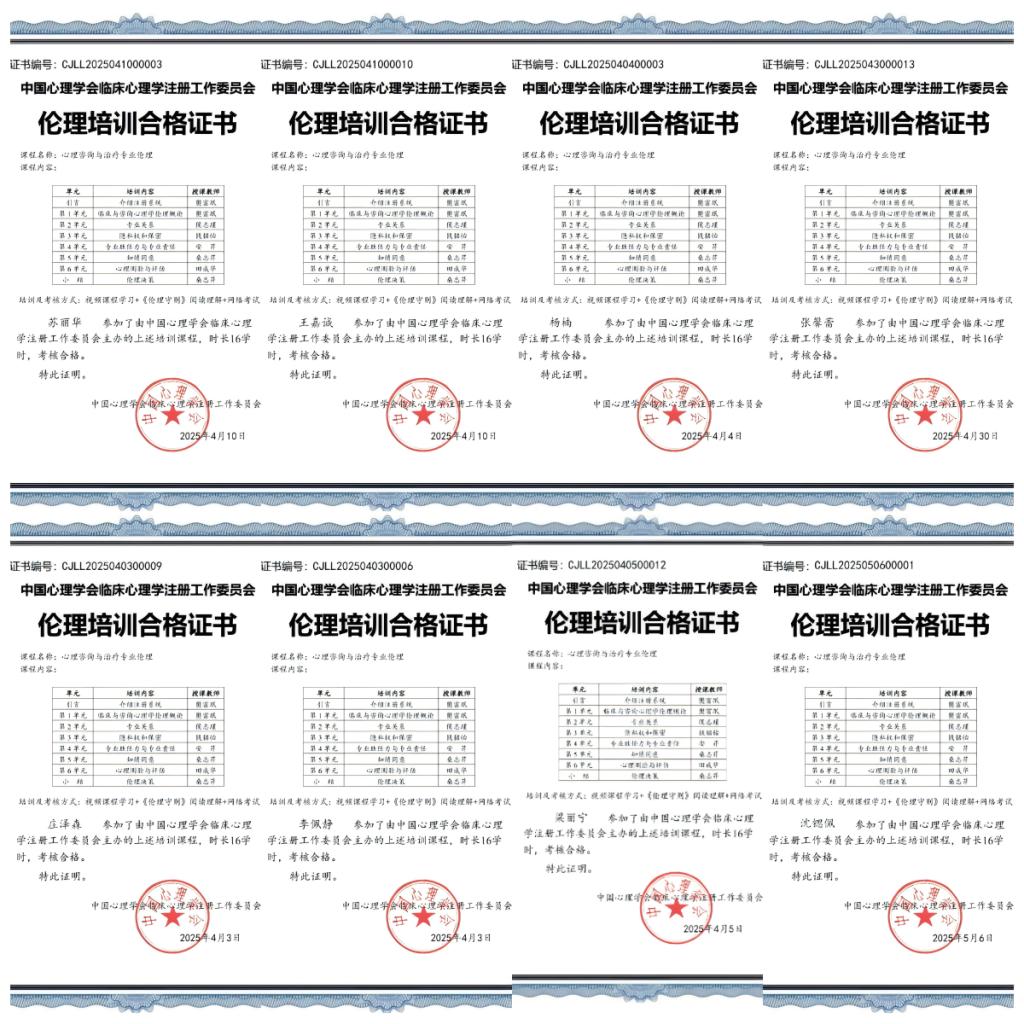 为提升心理健康教育工作的专业化与规范化水平,切实增强学工团队处理学生心理问题的能力,教育学院积极响应华职学〔2025〕7 号文件精神,组织全体辅导员参与心理咨询伦理培训(初阶)。截至目前,学院学工团队已全员顺利完成培训并取得相关证书,为构建更完善的学生心理健康支持体系奠定了坚实基础。
