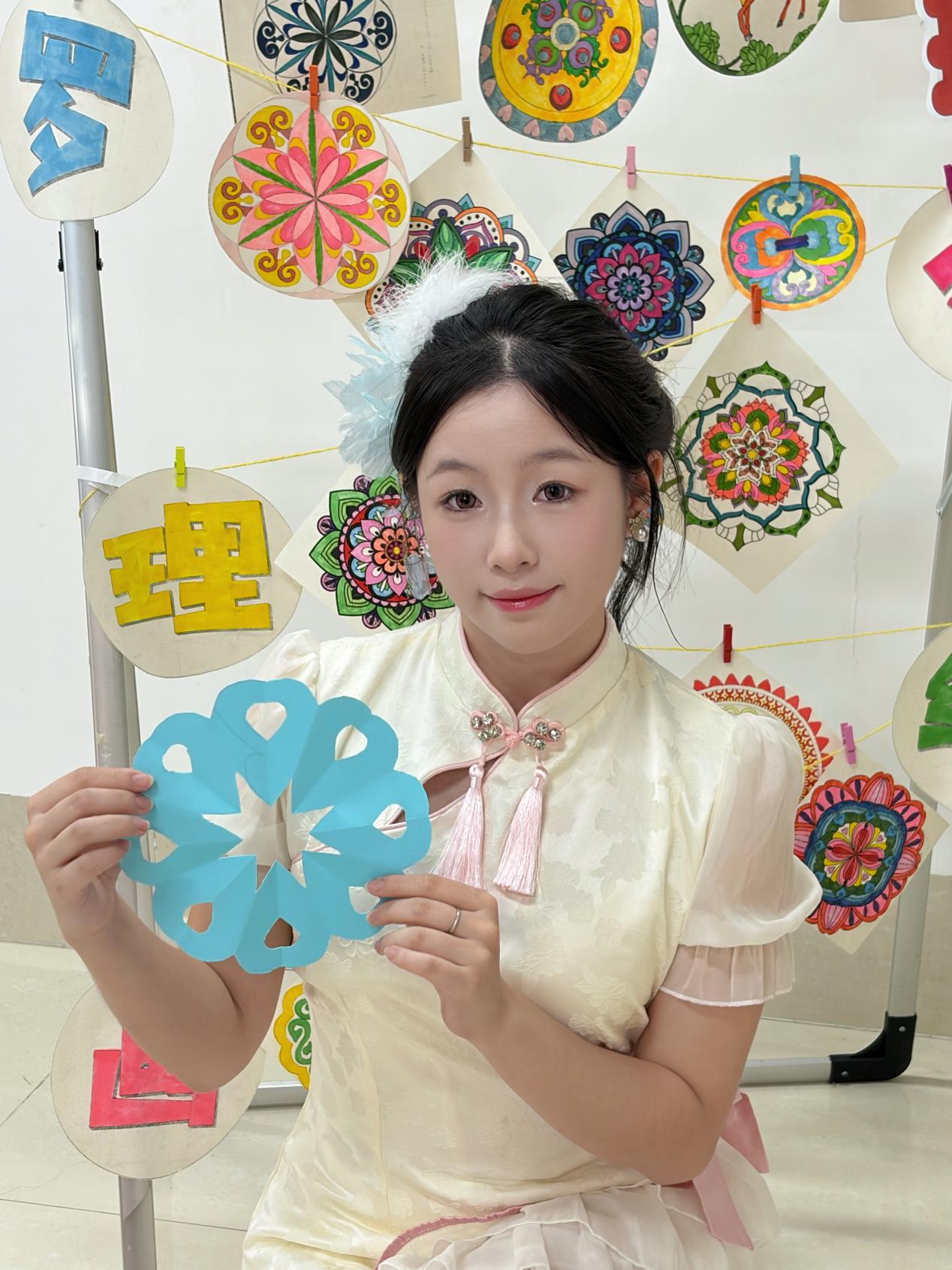 剪纸展区前,非遗魅力尽显。“指尖非遗,纸韵风华”活动中,同学们不仅近距离欣赏了精美的剪纸作品,更亲手体验裁剪技艺,将中秋元素融入非遗创作,让国家级非物质文化遗产在校园里焕发新活力。
