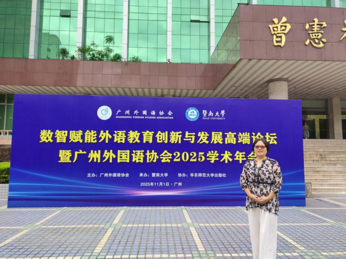 11月1日,数智赋能外语教育创新与发展高端论坛暨广州外国语协会2025学术年会在暨南大学曾宪梓科学馆二楼国际会议厅隆重举行。来自华南理工大学、中山大学、广东外语外贸...
