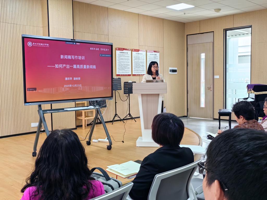 2025年12月23日下午,通识与教育学院在广州校区创科A4-904及江门校区7-201(线上同步)成功举办了新闻稿写作专题培训。培训由我校党委组织统战部潘京萍部长主讲,通识与...