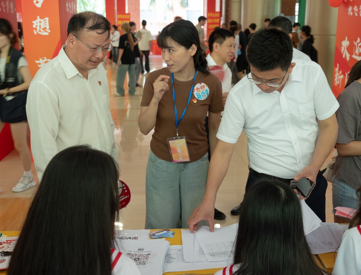 他们积极与新生及其家长进行了交流与沟通