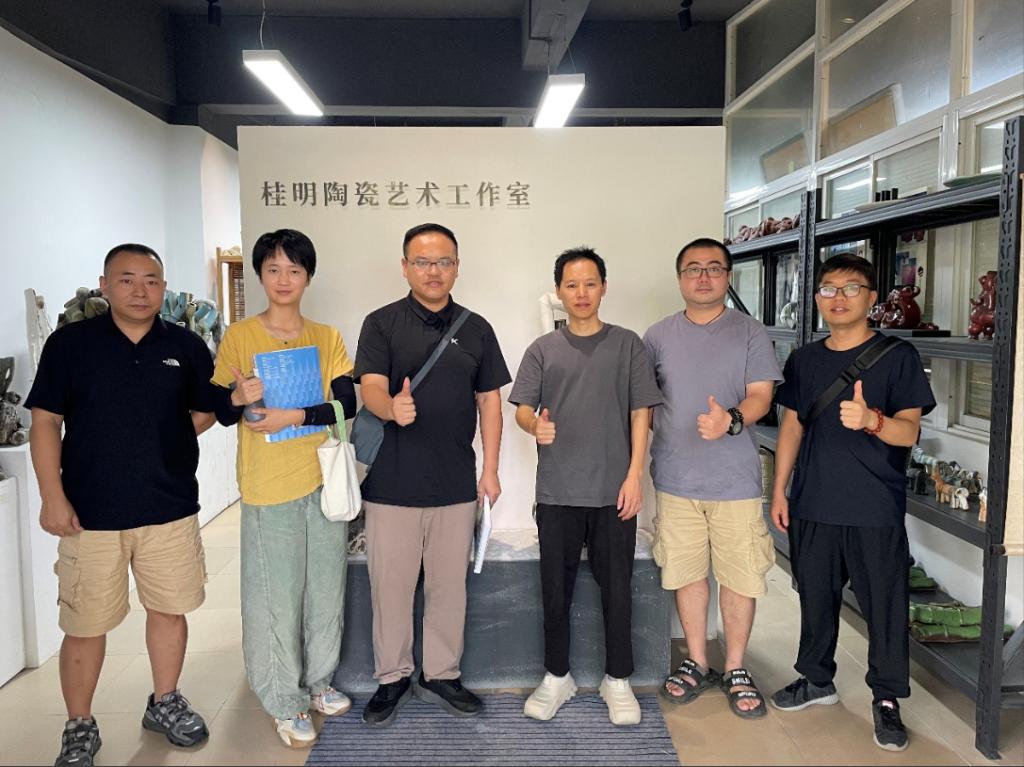 在实地参观与深度交流中,团队深入了解了该工作室在陶艺教育创新、课程体系构建、文化传承与国际传播等方面的突破性实践,陶瓷艺术工作室的建设不单是空间营造,更是教育理念的物化表达。桂明教授工作室将废弃材料转化为震撼艺术的教学实践,使学生在创造过程中领悟生态责任与文化传承的双重使命57。