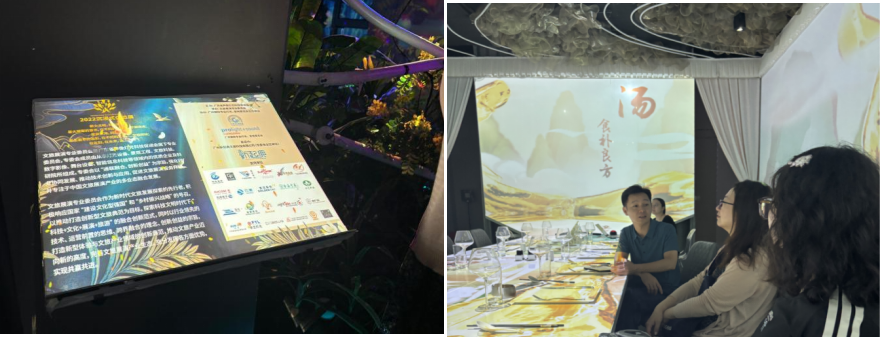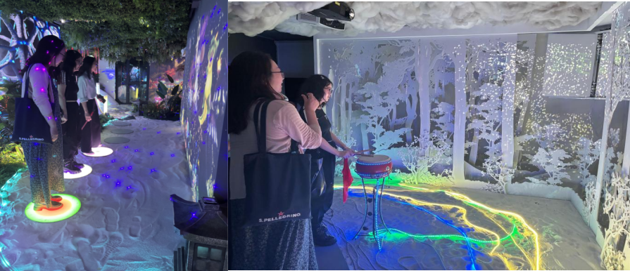 在刘总的带领下,学院一行先参观了公司展厅,沉浸式体验了从二维静态灯光到三维动态光影,再到AR/VR/XR交互体验的灯光数字影像技术:展厅内通过环形投影幕呈现的虚拟文旅场景,让人身临其境地感受光影变幻;互动操作台则可实时调整灯光效果、影像内容,直观展现数字技术与灯光艺术的融合魅力。随后,一行人还参观并体验了公司特色的z-box空间,该空间以沉浸式环绕音效与动态光影结合的呈现方式,打造出极具代入感的感官体验,进一步展现了新起典在空间数字艺术领域的创新能力,前沿科技带来的视觉与听觉双重冲击,让在场人员赞叹不已。