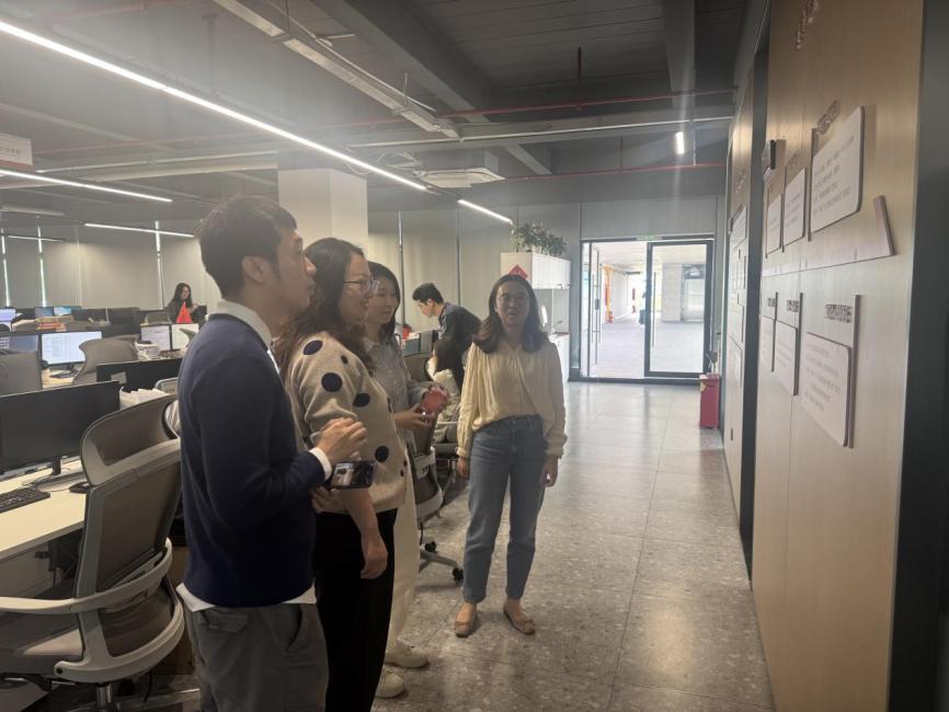走访第一站,一行人抵达东莞市中量工程咨询有限公司。23级工程造价专业学生林耿东目前在该公司造价业务部担任造价员实习生,全程参与本次走访交流。