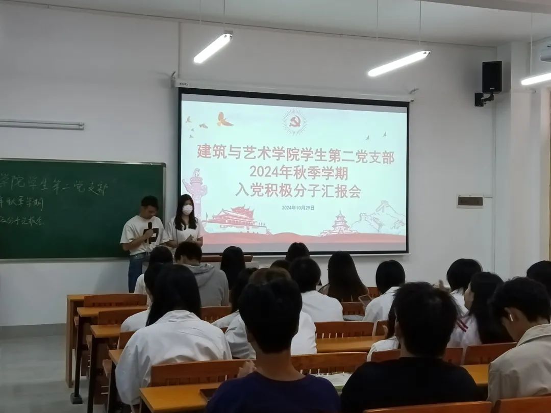 为进一步加强对入党积极分子的培养、教育和考察,提高入党积极分子的政治素养和思想觉悟,建筑与艺术学院学生第二党支部组织开展2024年秋季学期入党积极分子汇报会,本次汇报会由梁永裕、范雨晴主持。让我们一起来回顾本次汇报会的精彩内容。