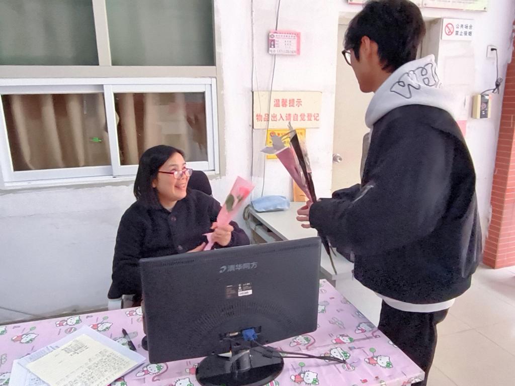 春风轻拂校园,绿意与花香共绽,又逢一年一度的三八妇女节。妇女节,这一特殊的节日,绝不仅仅是简单地对女性在社会各个领域所展现出的智慧、坚韧与勇气致以赞美与崇高敬意,它更是一个无比珍贵、能让爱与感恩尽情流淌与传递的绝佳契机。在校园里,女教师们宛如春日繁花,以各自的芬芳点缀着求知的天地,她们是知识的传播者、心灵的呵护者,更是学生成长路上的引路人;在教务系统的后台数据里、在档案室的层层架格间,行政老师们是精密运转的“校园CPU”;凌晨四点的食堂灯火,照见揉面师傅鬓角的霜花;正午骄阳下的保洁车,载着被汗水浸透的后背;宿舍楼管阿姨的记事本里记着每个孩子的家乡口味。在这个特别的日子,学生们为这些校园巾帼们送上节日温暖(鲜花)和手写感谢卡,以此传递对她们最诚挚的敬意。
