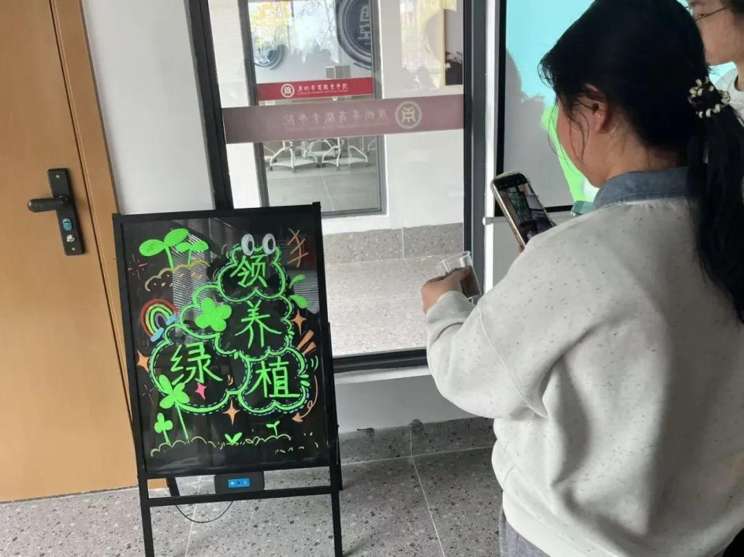 活动接近尾声时,完成种植第一步的同学们纷纷与自己亲手种下的绿植合影留念。一盆盆承载着希望的小绿植,不仅成为了校园里一道亮丽的风景线,更象征着同学们对环保事业的支持与承诺。