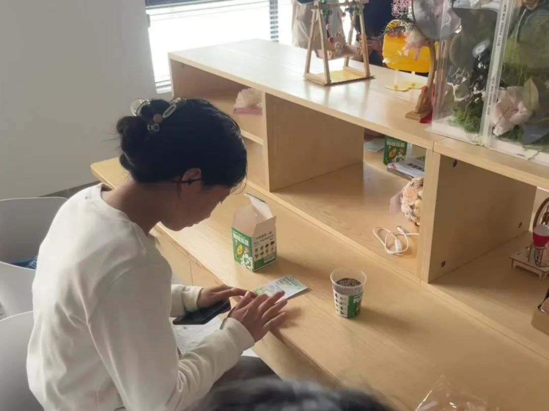 随后,便是令人期待的绿植盲盒种植环节。同学们小心翼翼地打开盲盒,取出种子、营养土和种植容器,开始亲手实践。大家一边对照着刚刚学到的知识,一边认真填土、播种、浇水,每一个步骤都做得一丝不苟。在这个过程中,大家相互交流种植心得,分享经验,现场充满了欢声笑语。