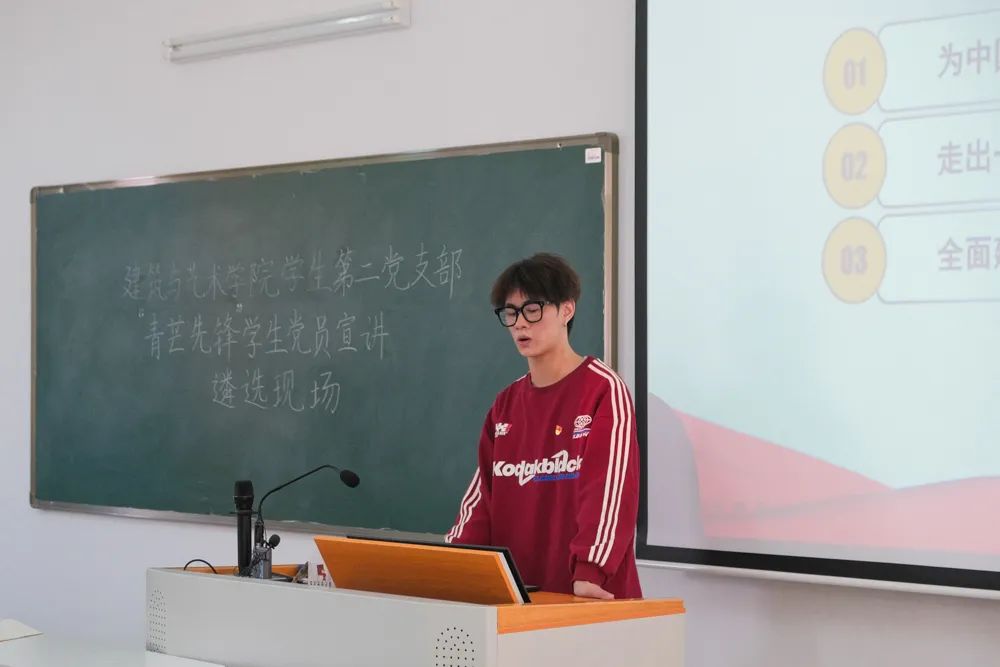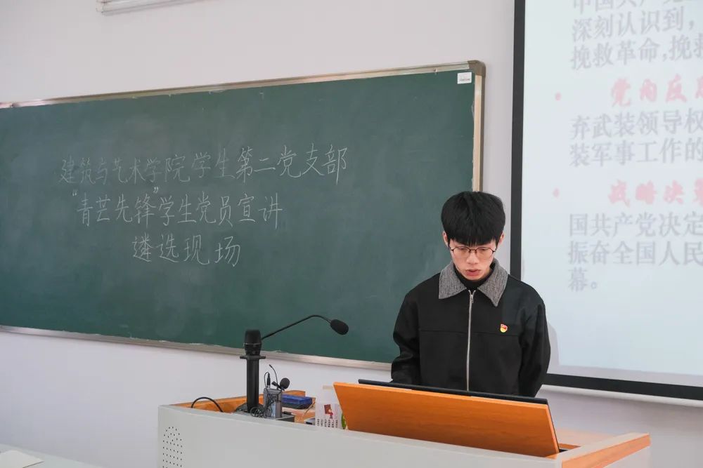 为深入学习贯彻习近平新时代中国特色社会主义思想,加强学生党员队伍建设,发挥学生党员的先锋模范作用,建筑与艺术学院学生第二党支部于3月19日在文科楼316-2室组织开展“青芒先锋”学生党员宣讲团遴选活动,莅临活动现场的老师有:党支部书记熊嘉丽、组织委员刘冰玲、宣传委员黄佳欣及全体辅导员老师、学生预备党员。会议由党支部书记熊嘉丽主持。