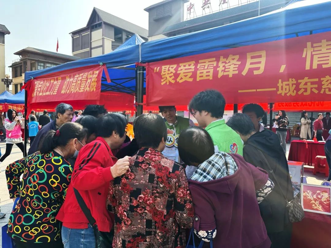 知识问答摊位前人头攒动,热闹非凡。工作人员准备了雷锋事迹、精神内涵等题目,志愿者与居民积极互动。大家或低头沉思,或热烈交流,成功答对的居民兴奋地领取环保袋。在一问一答间,雷锋精神得到了生动传播和传承。