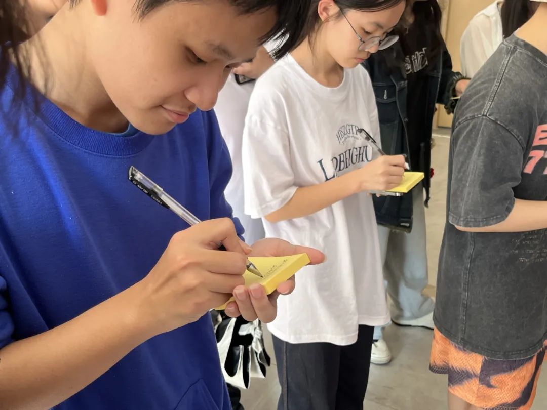 随着活动正式拉开帷幕,同学们依次走到书写台前,认真地书写雷锋金句。每一笔都饱含着对雷锋精神的尊崇。在书写过程中,现场气氛安静而庄重,大家用文字镌刻下对雷锋精神的理解,展现出新时代青年勇担社会责任的态度与决心。同时,工作人员时刻关注活动进展,为同学们提供协助,并与同学们进行互动交流,分享雷锋的事迹与精神,进一步加深同学们对雷锋精神的理解。