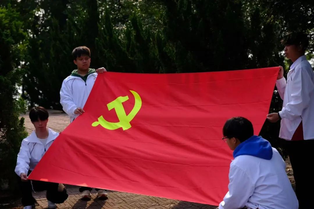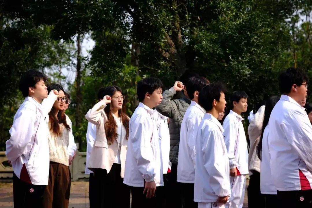 上午7点40分,全体党员及入党积极分子在学校统一集合,学生干部清点好人数并强调好纪律要求后,统一乘车前往崖门镇凤山烈士陵园。在苍松翠柏环绕的纪念碑广场,活动在雄壮的《国际歌》声中拉开帷幕。全体人员整齐列队,面向党旗肃立,用激昂的歌声唱响革命赞歌。