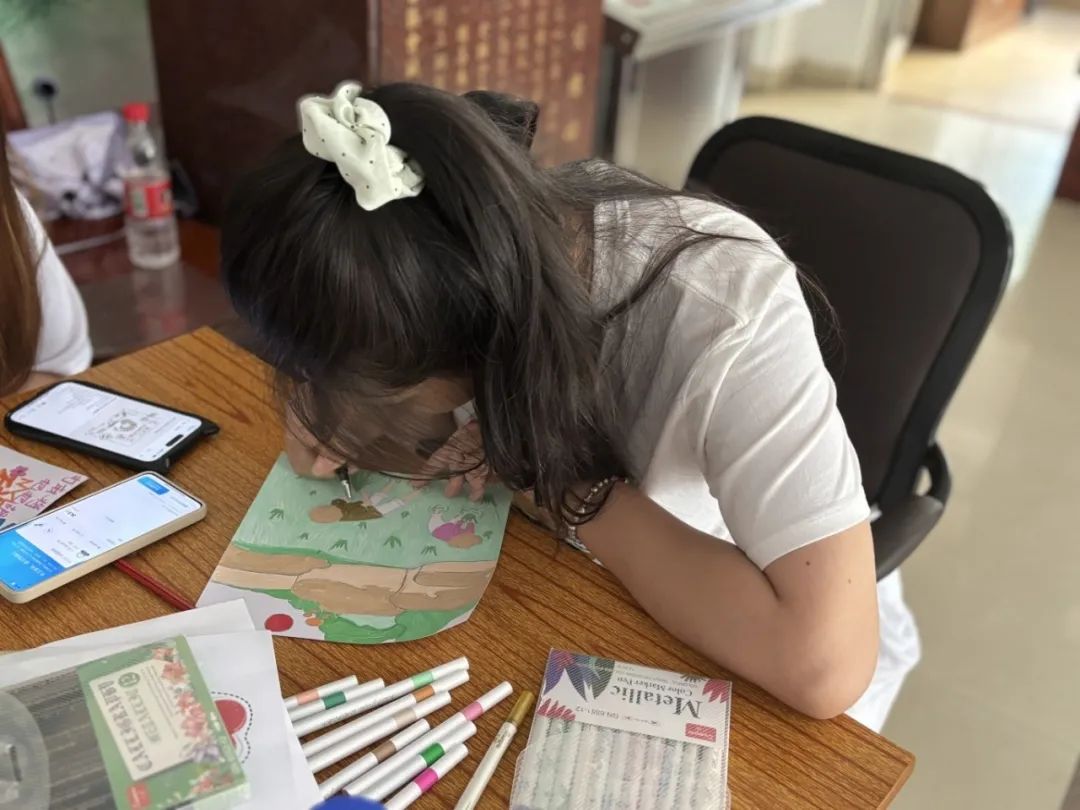 入党积极分子们认真聆听钟奶奶的故事后便迅速展开行动。大家摊开画纸,手持画笔,将刚刚记录在本子上的细节,凭借脑海中鲜活的印象,一笔一划勾勒在画纸上。有的同学眉头微皱,专注于描绘钟奶奶故事里的老旧建筑,力求还原岁月的质感;有的同学则嘴角含笑,精心为画面中年轻时的钟奶奶添上一抹灵动的色彩。沙沙的落笔声中,钟奶奶跌宕起伏的过往,逐渐在画纸上具象化,那些平凡又闪耀的人生片段被一一珍藏。