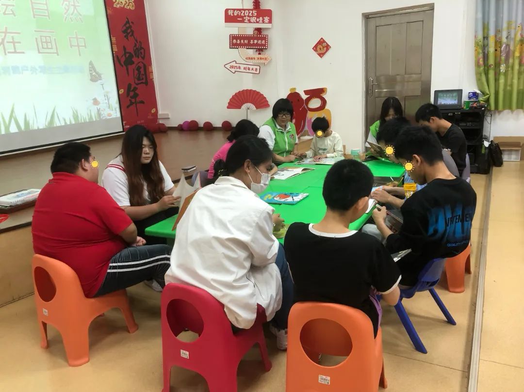 写生活动结束后,来到活动第二个环节,志愿者们带着孩子们在室内开展绘本阅读和创作。志愿者们与孩子们一起翻阅精美的绘图本,分享着书中的故事和画面,引导他们感受艺术的魅力。在轻松愉快的氛围中,孩子们发挥创意,创作出一幅幅充满童真和梦想的作品。