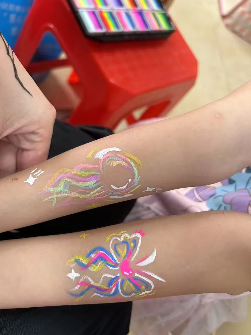 志愿者们耐心细致地为每一位参与者进行创作。他们手中的画笔灵动飞舞,不一会儿,一个个生动形象、色彩斑斓的图案便跃然于参与者的身体之上。