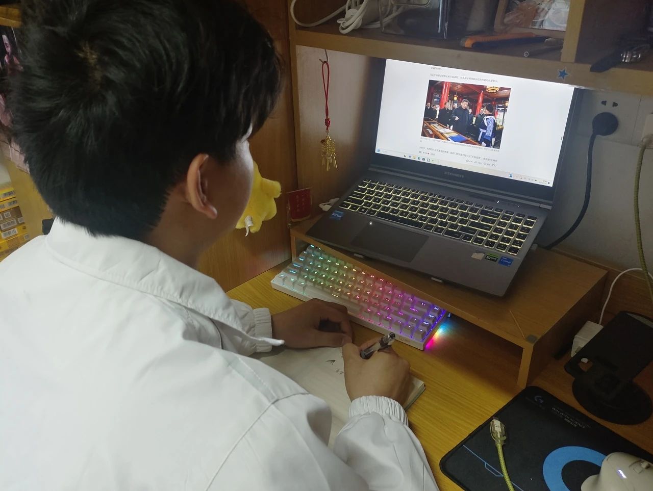 学生党员们通过观看习近平总书记在贵州、云南考察的纪实视频,撰写心得、拍摄学习照片等形式,深入领会讲话精神。