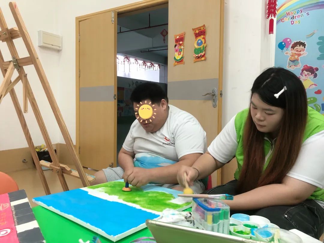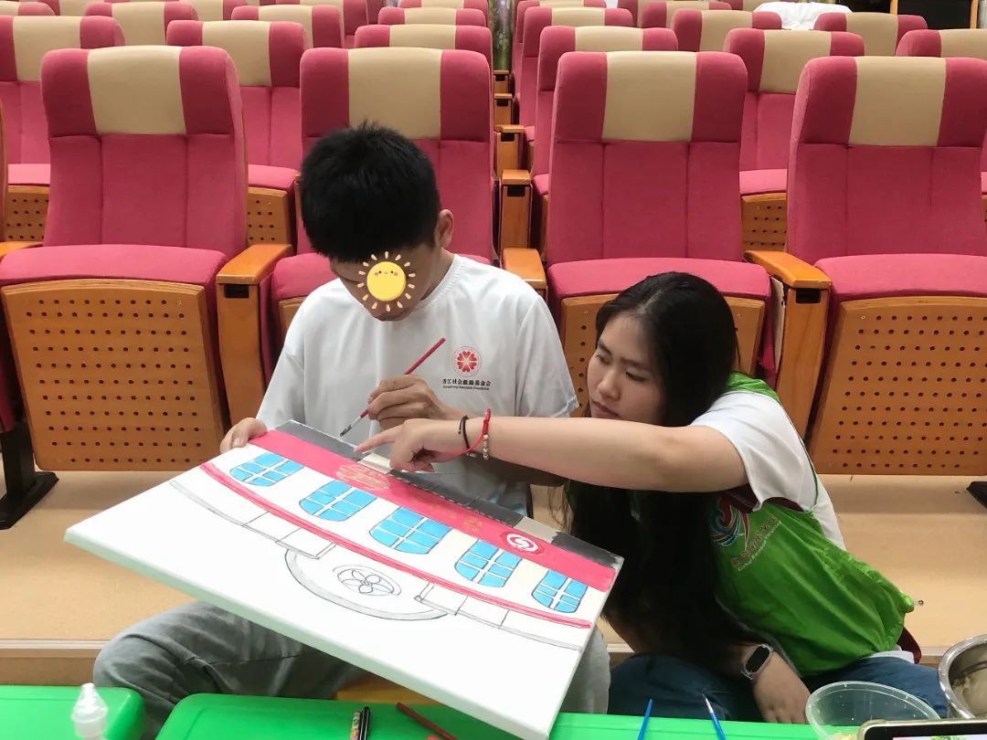 在绘画过程中,志愿者们与小朋友们一对一交流,耐心指导他们调色、填色,并鼓励他们大胆创作,发挥自己的艺术才能。现场气氛热烈而融洽,欢声笑语不断。