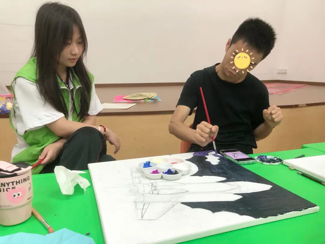 志愿者们用细腻笔触为孩子们打开艺术之窗。他们不仅耐心讲解构图原理与色彩搭配技巧,还通过手把手示范、一对一指导,让孩子们掌握素描、水彩等基础技法。志愿者们用鼓励的话语回应每一个稚嫩的创意。这些真诚互动悄然拉近了彼此距离,孩子们从最初的羞涩拘谨,到后来会主动挽着志愿者的手臂展示新作品。让孩子们真切触摸到社会的善意温度,也在他们心中种下温暖与希望的种子。