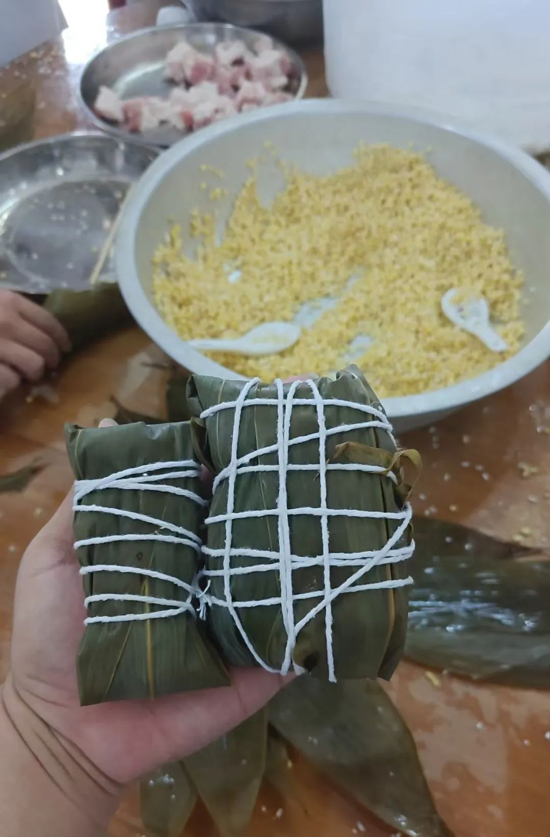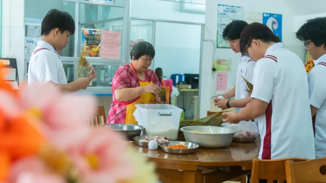 经过大家齐心协力,一个个饱含着温情的粽子整齐地摆放在蒸笼里。当热气腾腾的粽子出锅时,整个食堂都弥漫着浓郁的粽香。