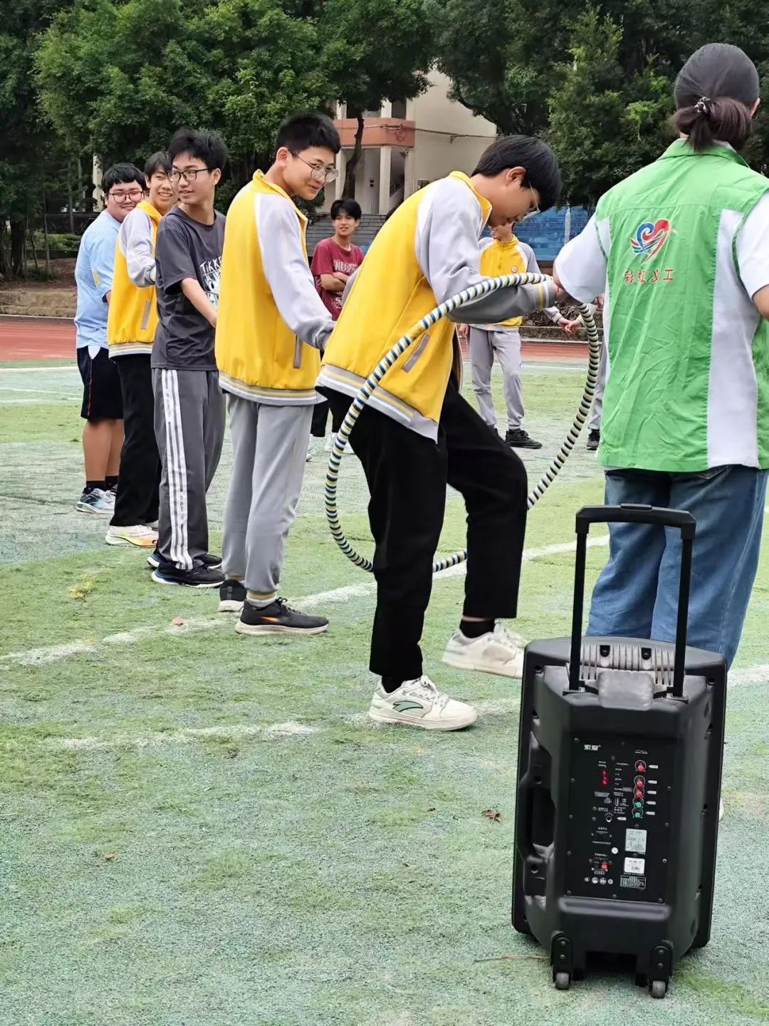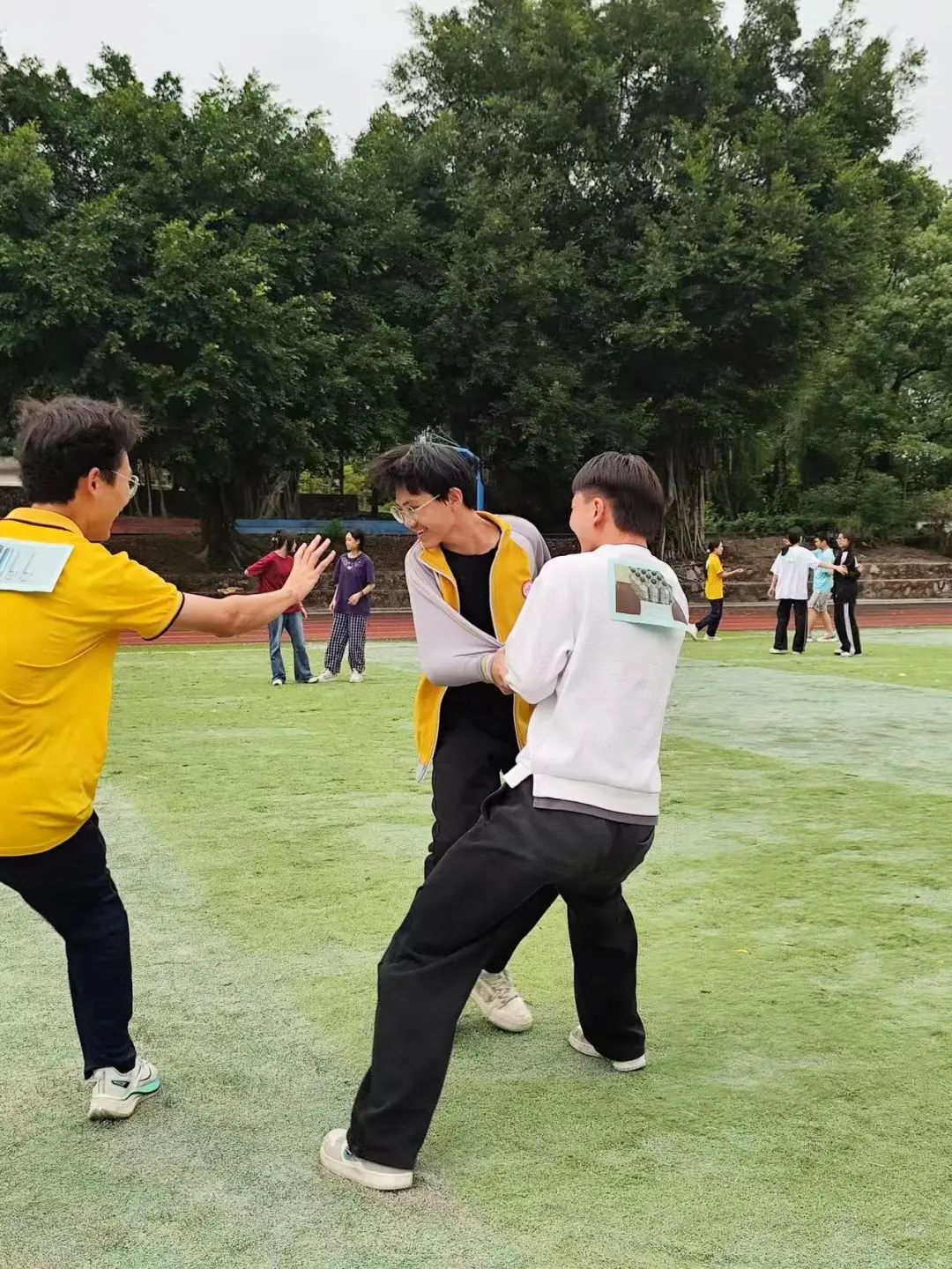 在“快乐撕名牌”活动中,每位同学的名牌背面都贴有不同毒品的名称。游戏开始后,同学们迅速分散,在追逐与躲避间展开激烈的“攻防战” ,在充满活力的竞争中尽情释放压力,体验运动带来的酣畅快乐。当某位同学的名牌被撕下,便需现场回答出毒品的危害或其他毒品名称。在欢声笑语与紧张刺激的氛围里,同学们不仅达到了放松身心的目的,更在潜移默化中加深了对毒品的认知,有效提升了防毒、拒毒意识,让安全教育变得生动有趣。