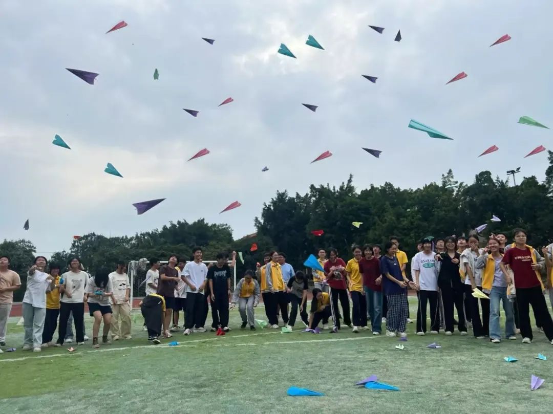 在“放飞压力-解压纸飞机”环节,志愿者们为每位同学发放了彩色卡纸。大家拿起笔,认真写下近期学习和生活中遇到的压力事件:堆积如山的试卷、紧张的备考节奏、对未来的迷茫……随后,在志愿者的指导下,同学们将承载着压力与烦恼的卡纸仔细折成纸飞机伴随着一声令下,大家用力将手中的纸飞机抛向空中。一架架纸飞机承载着同学们的压力与梦想,在空中划出优美的弧线,飞向远方。通过这一简单而富有仪式感的活动,同学们将心中的心事与压力“放飞”,有效缓解了情绪,进一步增强了心理韧性,以更轻松的心态迎接即将到来的挑战。