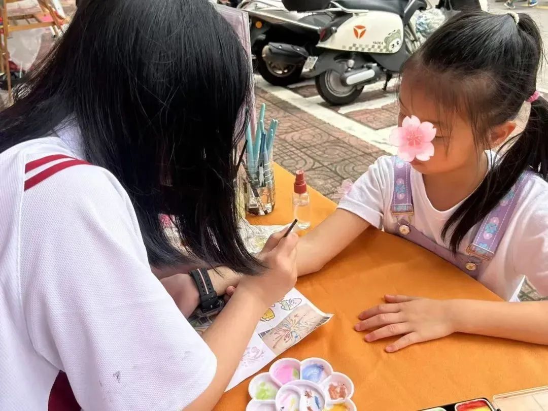 志愿者们充分发挥专业特长,精心构思每一幅作品。从深受孩子们喜爱的卡通形象,如活泼可爱的小猪佩奇、栩栩如生的派大星,到充满梦幻色彩的蝴蝶,再到美丽漂亮的花朵,每一笔都饱含着对孩子们的关爱与祝福。绘画过程中,志愿者们不仅展示出精湛的绘画技巧,还耐心地与孩子们互动交流,倾听他们的故事,解答他们的疑问,现场氛围温馨而热烈。