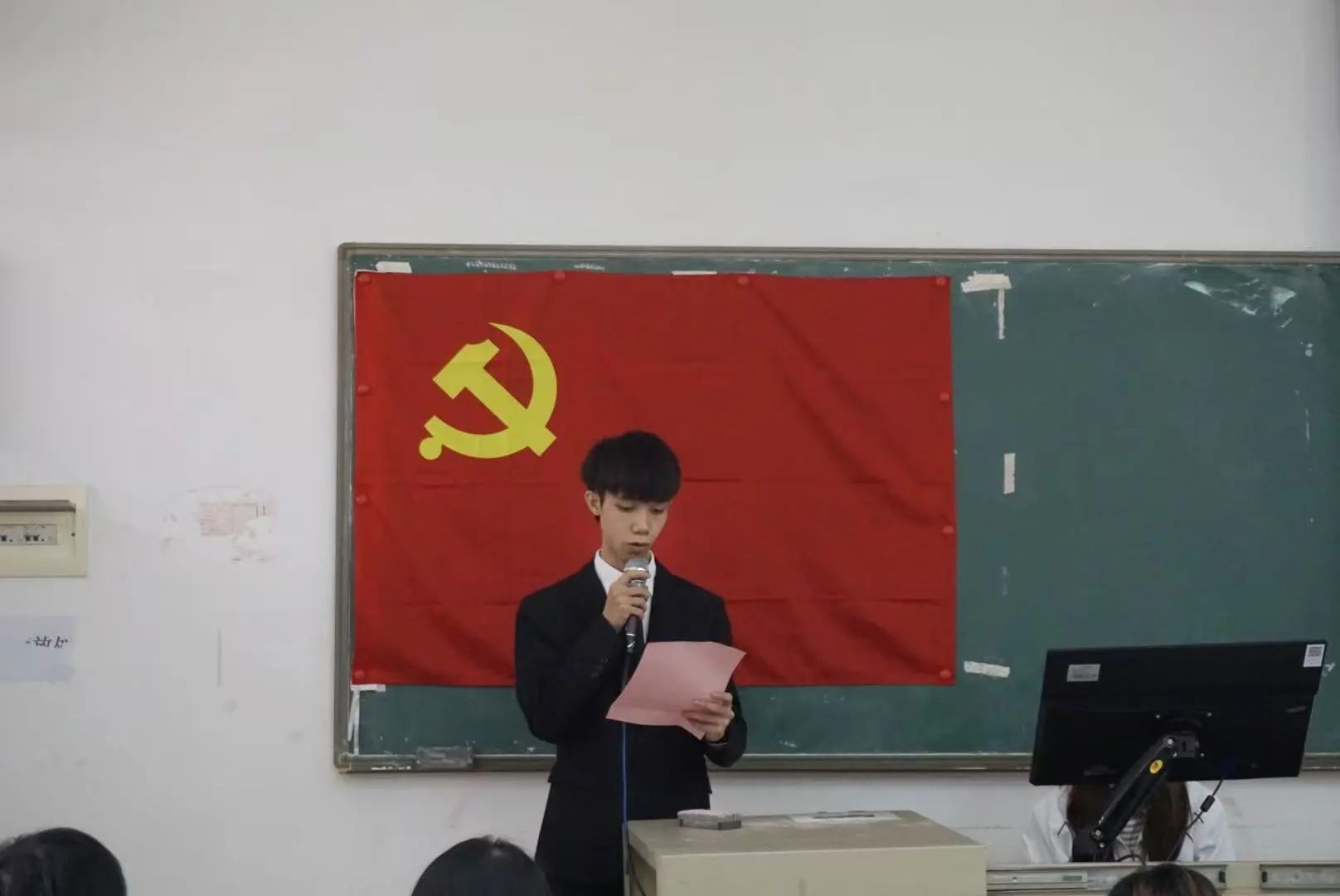 第五项议程,进入大会关键环节——支部党员讨论与表决。与会正式党员在充分听取汇报和介绍人意见后,进行了认真讨论。随后,大会采用无记名投票方式进行表决。第六项议程,宣布结果:赞成接收林坚正等6名同志发展为正式党员的人数超过应到会有表决权正式党员的半数,支部大会一致同意他们按期转为中国共产党正式党员!会场响起热烈掌声,向新党员们表示祝贺。
