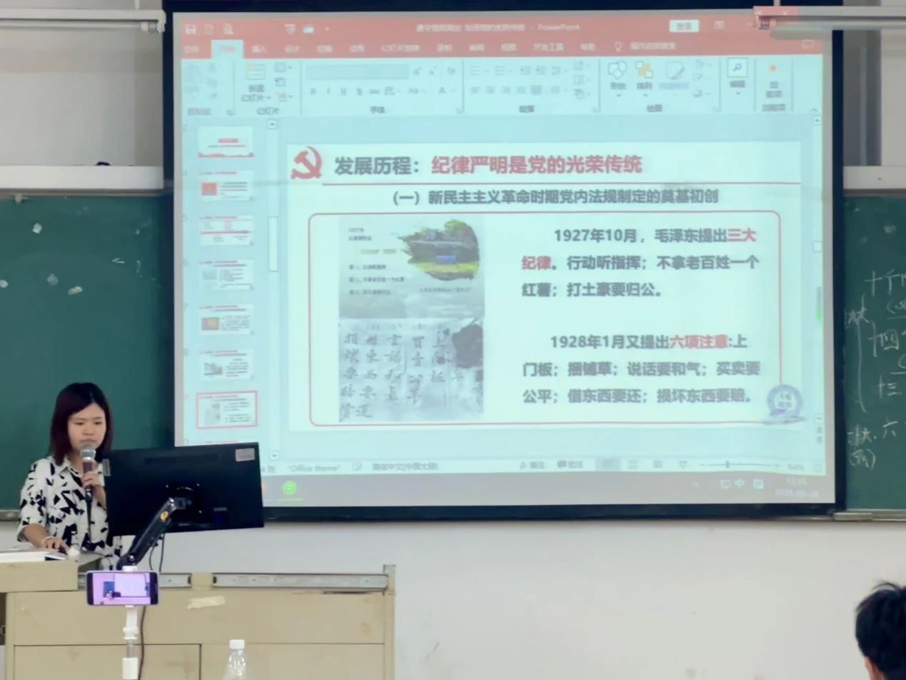 吴宇茜老师以《遵守党规党纪 发扬党的良传统》为主题展开中级党课第三讲,系统阐释纪律建设对党的生命力的根本保障作用。她以“三大纪律八项注意”的历史渊源为切入点,结合十八大以来全面从严治党典型案例,强调党纪严明是党历经百年风雨而永葆生机的重要基因。课程深入剖析党的理论联系实际、密切联系群众、批评与自我批评三大优良传统,指出新时代青年需以党章为镜鉴,在学风建设、社会实践、服务群众中锤炼党性修养,将纪律意识内化为“日用而不觉”的行为准则,以青春担当赓续红色血脉。