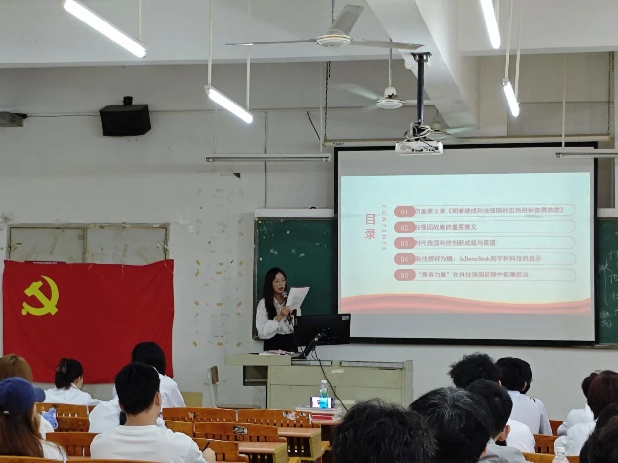 中级党课第二讲由莫桂遇老师为我们授课,莫桂遇老师以《科技强国梦,青春永担当》为主题展开第二讲,系统阐释科技自立自强对民族复兴的战略意义。她以国产大模型DeepSeek、机器人先锋宇树科技等创新成果为例,剖析我国从“跟跑”到“并跑”“领跑”的跨越历程,强调科技创新是培育新质生产力的核心引。课程聚焦青年使命,呼吁学员以“时不我待的紧迫感和舍我其谁的责任感”,将个人理想融入科技强国实践,在人工智能、量子信息等前沿领域勇担开拓重任,以青春热血点燃科技报国的时代火炬。