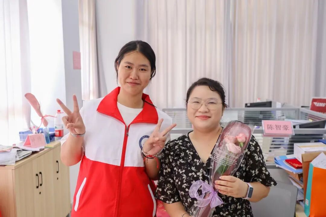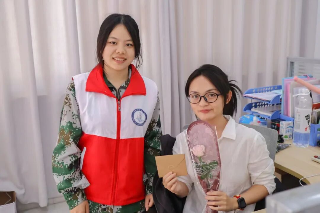9月10日教师节当天,党支部书记熊嘉丽老师带领入党积极分子们分头前往学院办公室、教学楼。将手写贺卡与鲜花逐一送到老师手中。当同学们双手递上礼物,真诚道一声“老师,祝您节日快乐”时,老师们的脸上瞬间绽放出惊喜与欣慰的笑容,纷纷表示感受到了来自同学们的温暖与关怀。