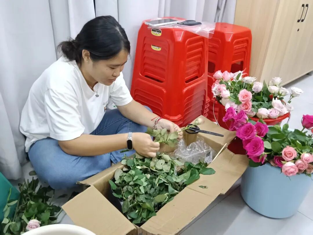为确保活动高效有序开展,党支部精心策划、统筹安排,明确分工,入党积极分子们自觉组成“攻坚小分队”全力推进前期准备工作。他们利用课余时间精挑细选花材;在鲜花处理现场,大家分工协作,细心修剪枝叶、去除花刺、整理花型,将每一支鲜花都打理得饱满规整。