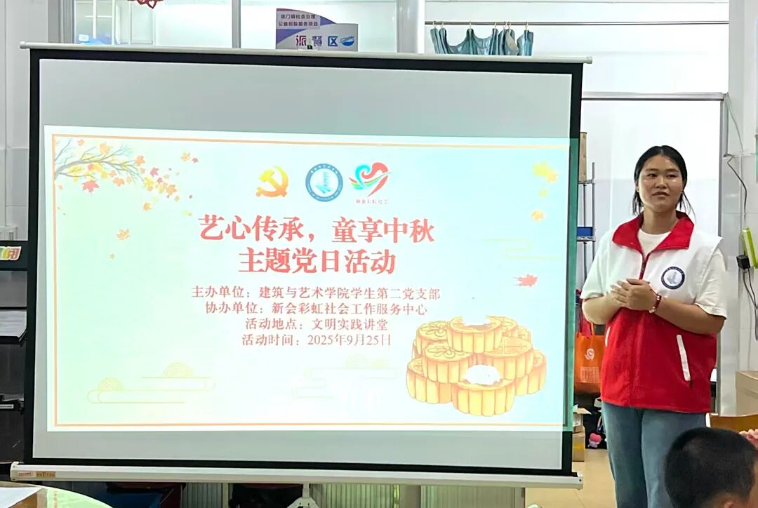 此次活动是建筑与艺术学院学生第二党支部践行“党建+志愿服务”模式的生动实践,也是新会彩虹社工党支部深化社区服务的重要举措。两支部以中秋为契机,将传统文化传承与社区关爱相结合,既让学生党员在实践中提升服务能力、强化责任担当,也为社区儿童搭建了感受传统、增进亲情的平台。