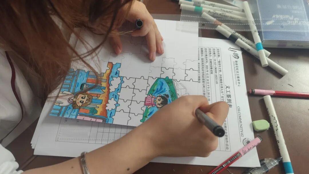 活动现场暖意融融,入党积极分子们携带画板、颜料、卡纸等专业工具,结合提前与社工对接整理的“温情档案”,志愿者们耐心倾听长者讲述过往故事——有年轻时的工作坚守,有与家人团聚的温馨瞬间,也有岁月沉淀的人生感悟。他们时而细问细节、时而勾勒线条,将老人们的神采风貌与珍贵记忆精心呈现在画纸上;同时以温润文字梳理故事脉络,为画作搭配走心配文,后续将装订成册并定制相框赠予老人,让每一份回忆都有专属载体。