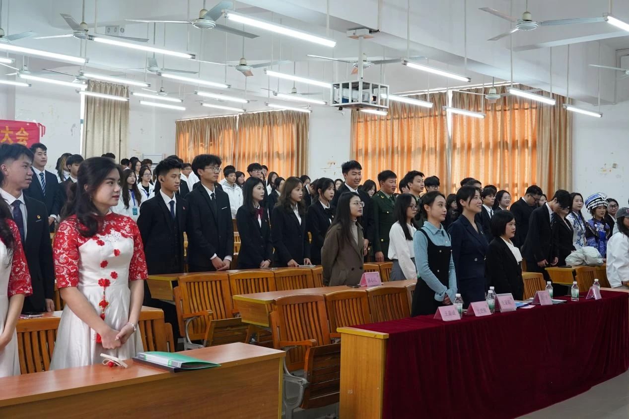 在庄严的国歌声中,建筑与艺术学院学生会第一次学生代表大会拉开序幕。