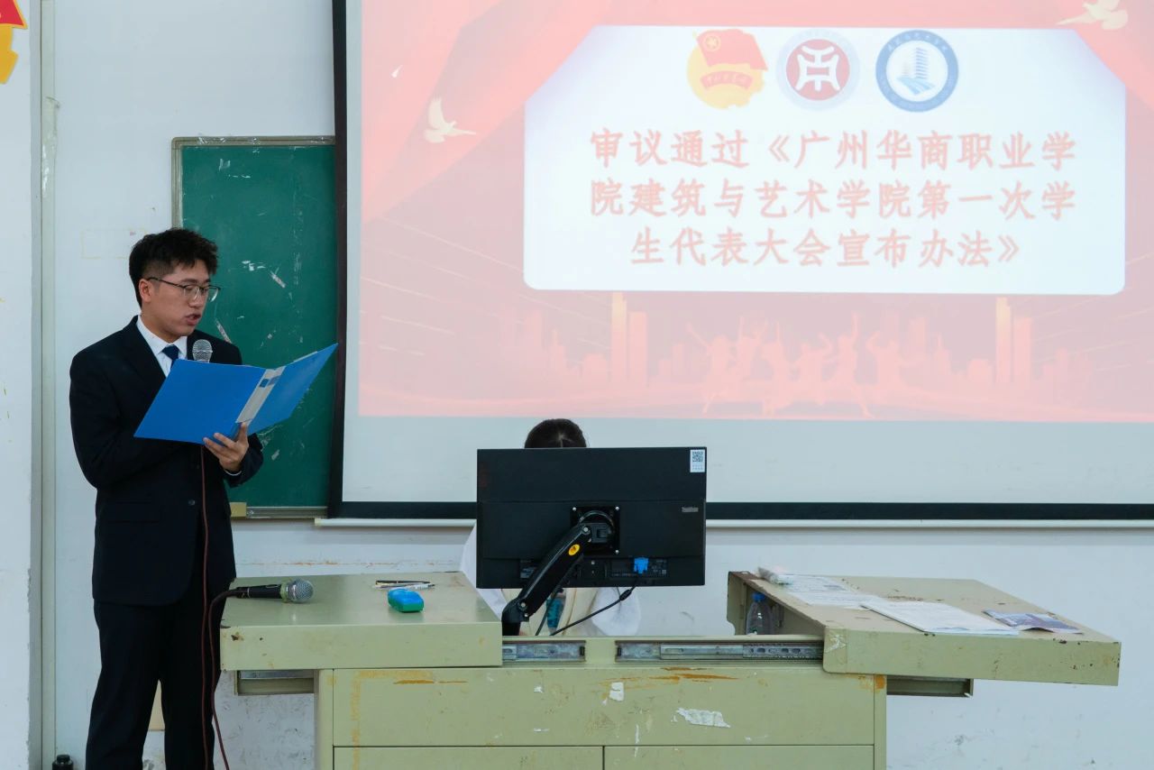 大会工作人员张浩楠宣读《广州华商职业学院建筑与艺术学院第一次学生代表大会选举办法》。
