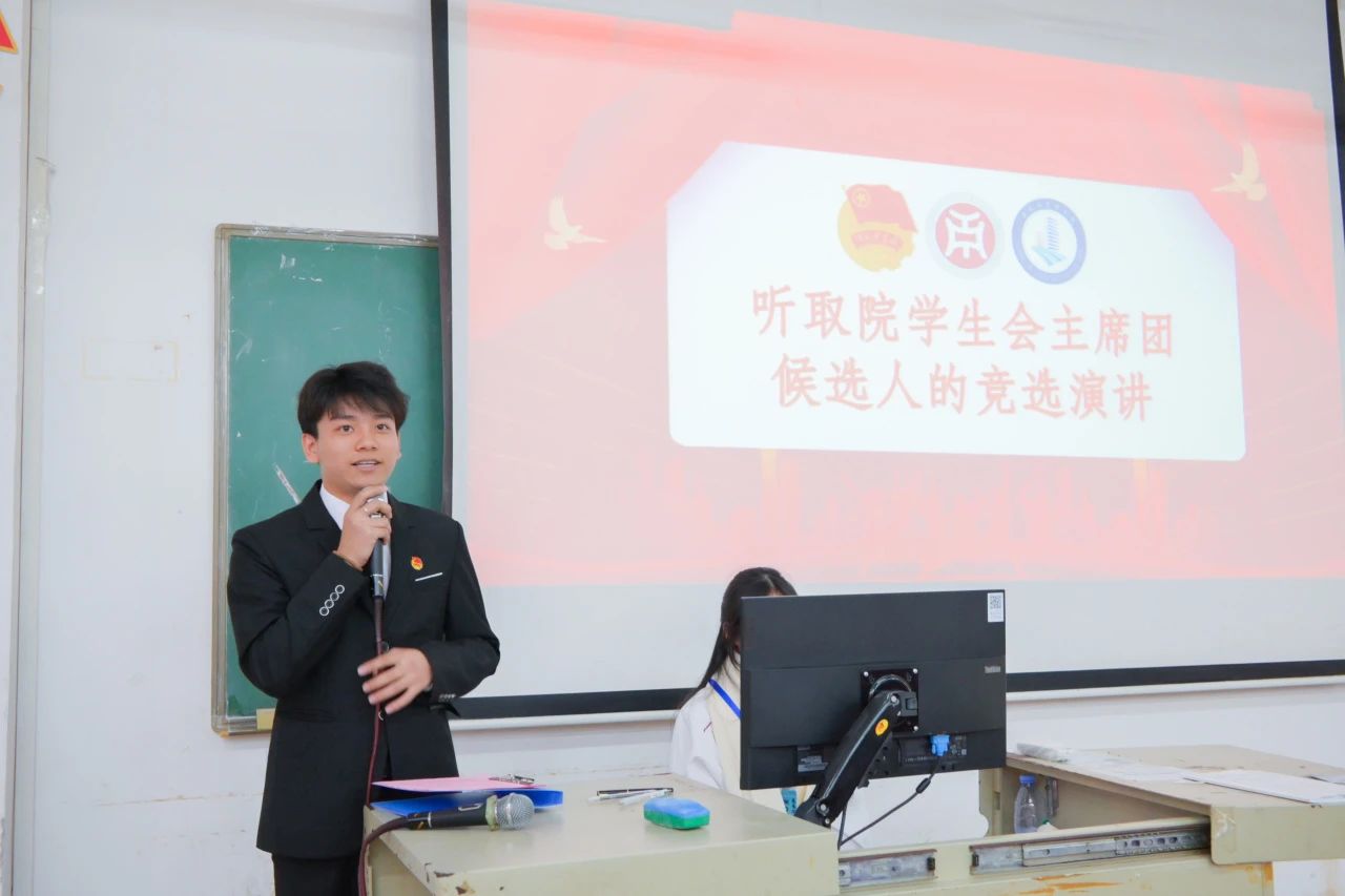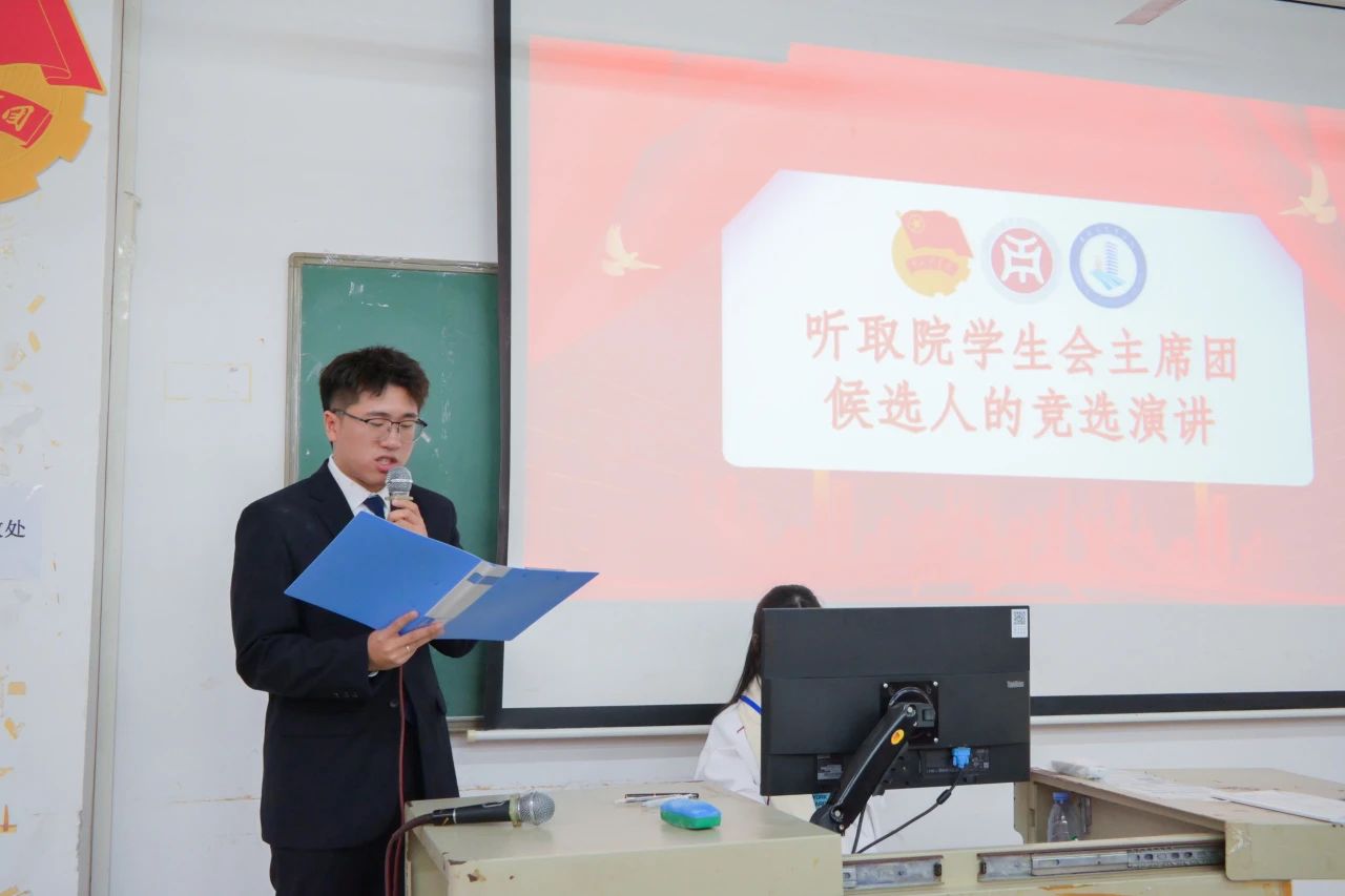 听取院学生会主席团候选人的竞选演讲