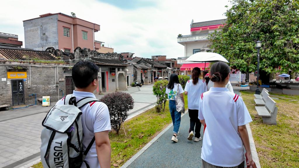 工作会议结束后,指导老师欧曼芸与李孟冰带领全体成员踏上项目计划的打卡路线,开启深度调研之旅。两位指导老师沿途为成员们细致地介绍每一个打卡点背后的历史渊源与文化内涵,从古老的碉楼到静谧的祠堂,从蜿蜒的石板路到斑驳的青砖墙,每一个角落都承载着瓜岭村的岁月记忆。成员们在聆听中感受着古村落的厚重底蕴,同时用心记录下每一个细节,为“瓜岭寻踪”小程序的开发积累珍贵素材,也为后续的文旅体验设计奠定坚实基础。