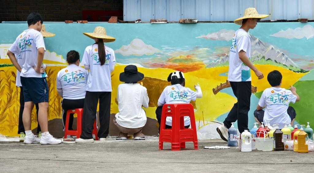 这面墙,从此不再只是一面隔绝风雨的墙。它作为“百千万工程”中青春赋能乡村的缩影,墙上的麦浪连着田垄的生机,耕牛的身影映着村民的劳作。那些浸透汗水的色彩,正是绿美乡村建设的鲜活印记,让“百千万工程”的暖意,顺着笔触融入新山吓村的肌理,生长出更生动的新故事。