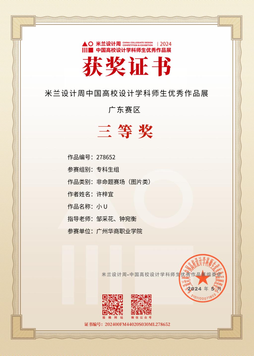 在2024年举办米兰设计周-中国高校设计学科师生优秀作品展中,我校建筑与艺术学院学生表现出色,荣获广东省赛二等奖1项、三等奖7项。