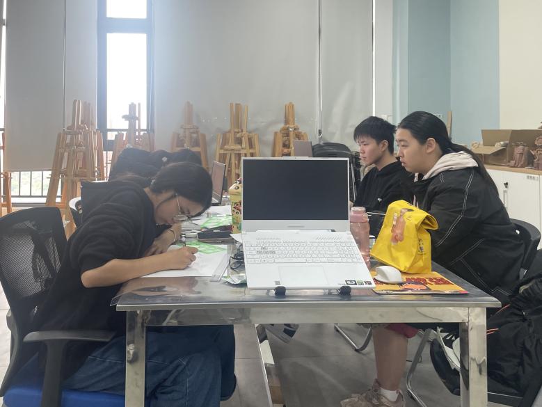 广州华商职业学院师生团队为了在比赛中展现出最佳水平团队成员每天坚持高强度训练,自开学起就全身心投入紧张的备赛环节。在备赛过程中,他们通过大量手绘练习捕捉设计灵感,反复推敲空间布局与细节,为后续数字化设计奠定坚实基础。在效果图和施工图绘制环节,团队利用SketchUp和3DMax软件将手绘构思转化为高质量的数字化成果,同时借助CAD严格按照国家规范和行业标准绘制施工图,确保设计的可实施性。在设计说明及展板制作环节,团队成员结合文字与视觉元素,清晰阐述设计理念、亮点及施工细节,增强了方案的说服力和展示性。