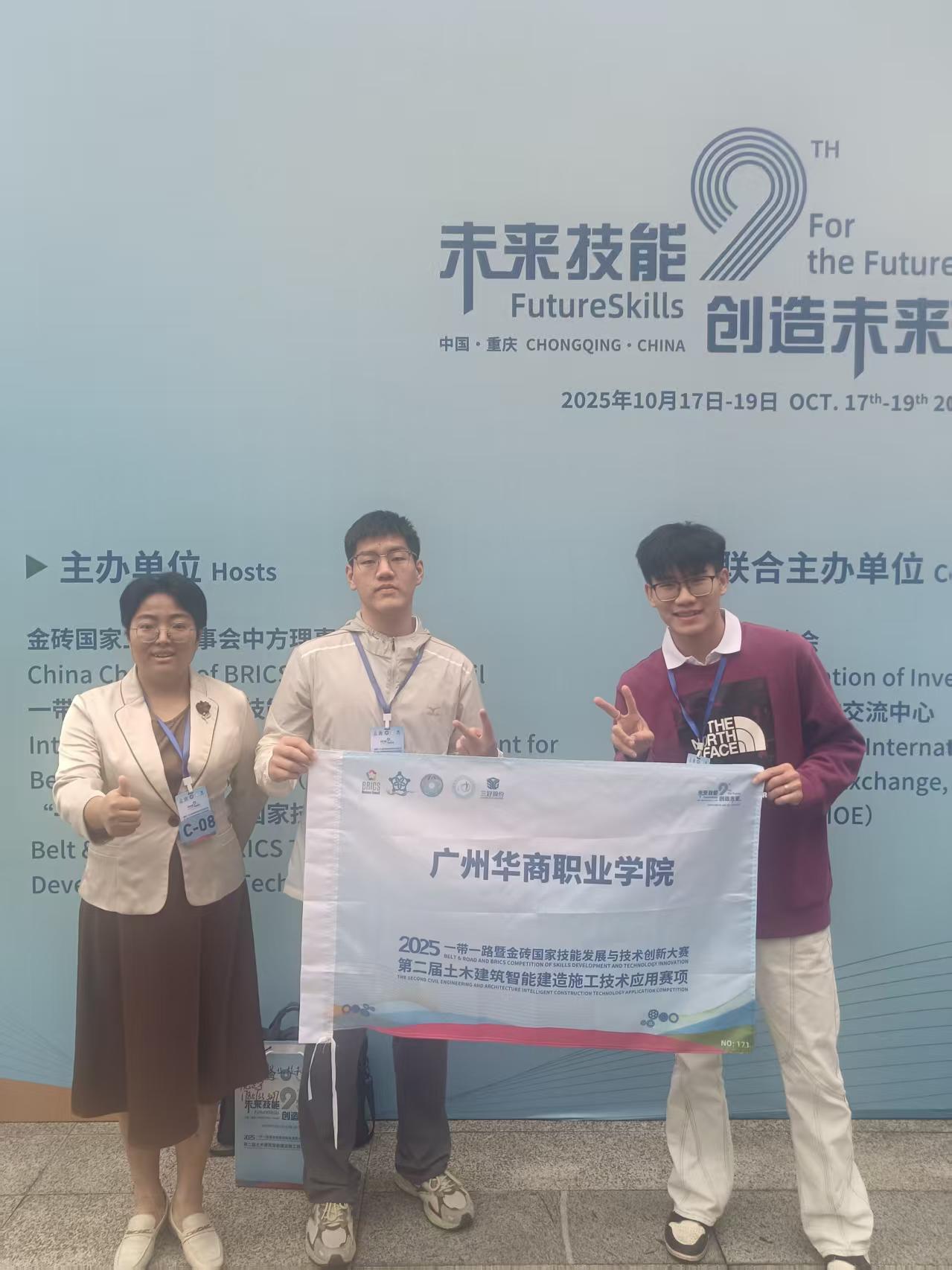 2025年10月18日,2025"一带一路"暨金砖国家技能发展与技术创新大赛重要赛项——第二届土木建筑智能建造施工技术应用赛项决赛在重庆安全技术职业学院隆重开幕。作为建筑领域的重要国际赛事,本次比赛吸引了来自全国各地的优秀选手参与,分为教师组和学生组两大类别进行角逐。 图1 比赛现场 我院高度重视此次国家级赛事,选派优秀骨干教师苏瑾瑾担任指导老师,带领24级建筑工程技术1班的周顺昌、冯俊超两位学生组成代表队,分别参加了教师组和学生组的决赛。经过为期三天的激烈比拼和严格评审,苏瑾瑾老师凭借扎实的专业功底和出色的现场表现,在强手如林的教师组竞赛中脱颖而出,荣获国家级三等奖;两位同学也在比赛中展现了良好的专业技能和团队协作能力,最终获得国赛优秀奖。 图2 苏瑾瑾老师和两位参赛学生 此次参赛不仅为学校赢得了荣誉,更重要的是通过参与高水平赛事,有效促进了建筑工程技术专业的教学改革和内涵建设,实现了建筑专业教学与建筑行业"新技术、新工艺、新材料、新设备"四新技术的精准对接。同时,通过与其他高校选手的切磋交流,积累了宝贵的参赛经验,为今后参加同类比赛取得更加优异的成绩奠定了坚实基础,对提升学校建筑类专业建设水平和人才培养质量具有重要意义。 图/文 苏瑾瑾
