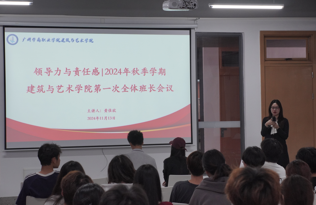 2024年11月13日,建筑与艺术学院2024学年度第一次全体班长会议在启超书院11A报告厅召开。本次会议由黄佳欣老师,刘冰玲老师,冯志强老师主持,我院全体班长参加此会议。