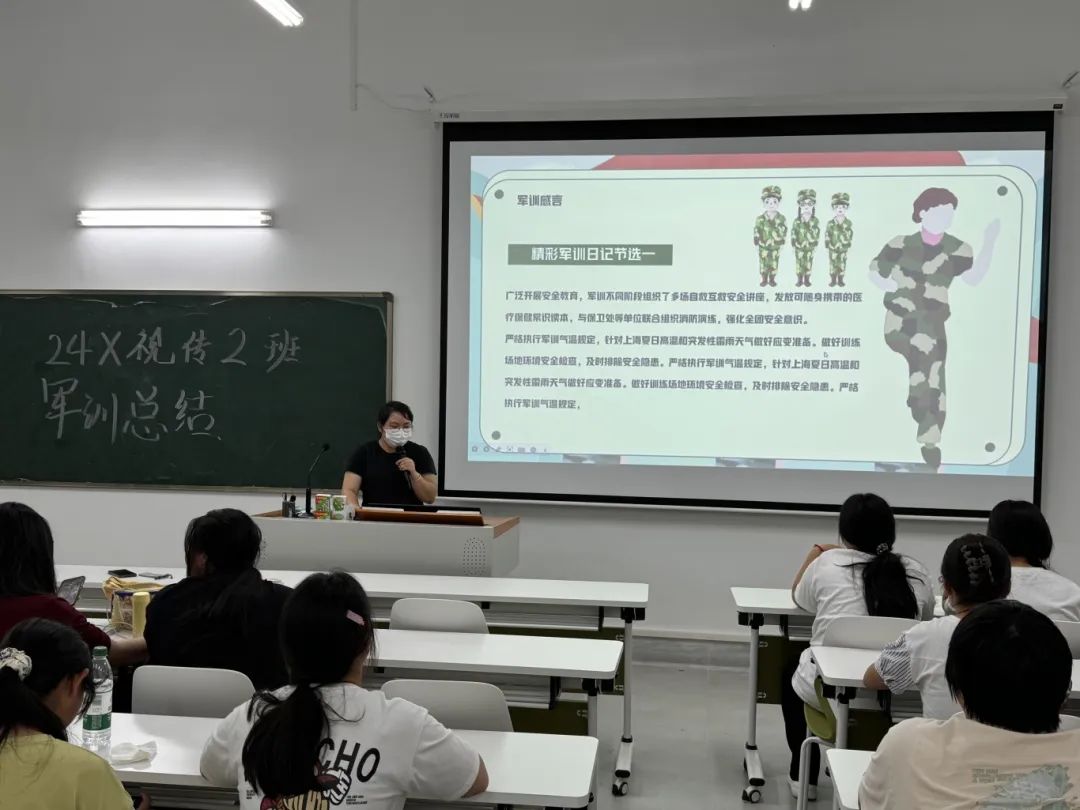 在军训结束后,24X视传2班迅速组织了军训总结班会,对军训期间同学们的表现进行了全面回顾与总结,分享了军训中的成长与感悟。
