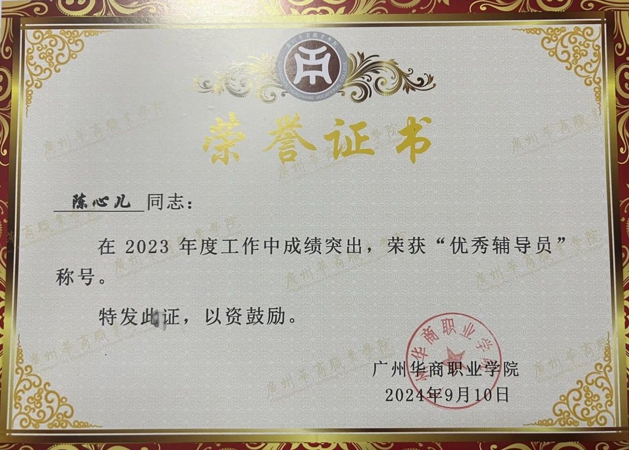 陈心儿,女,中共党员,获得优秀辅导员称号。