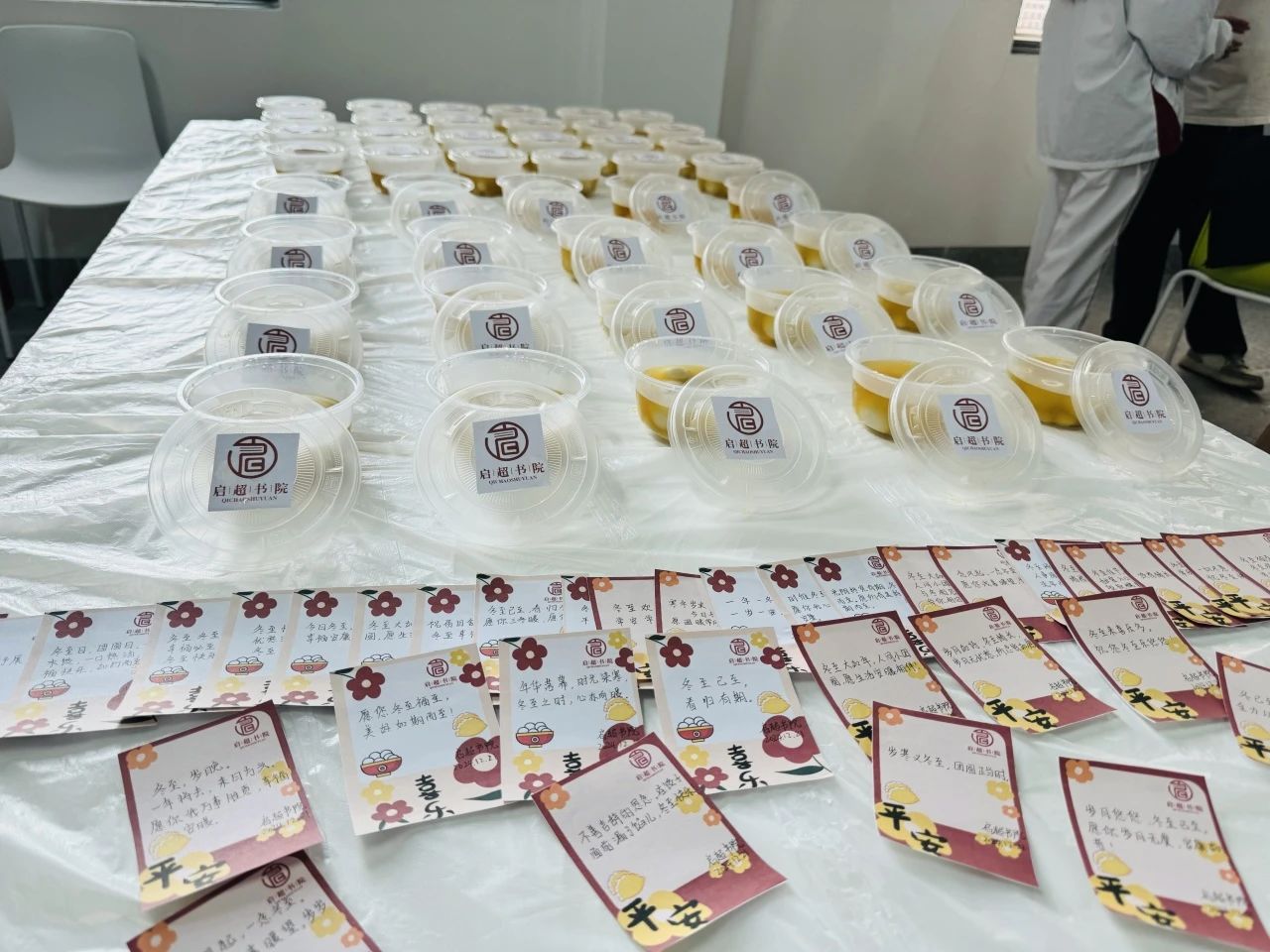 活动当天,启超书院还精心准备了一份特别的环节 —— 为节日期间在岗的值班老师和工作人员送上热气腾腾的汤圆,他们在各自的岗位上默默坚守。切实保障全校师生的安全与健康。这小小的汤圆,不仅是一份美食,更是对他们无私奉献的深深敬意与诚挚感谢。