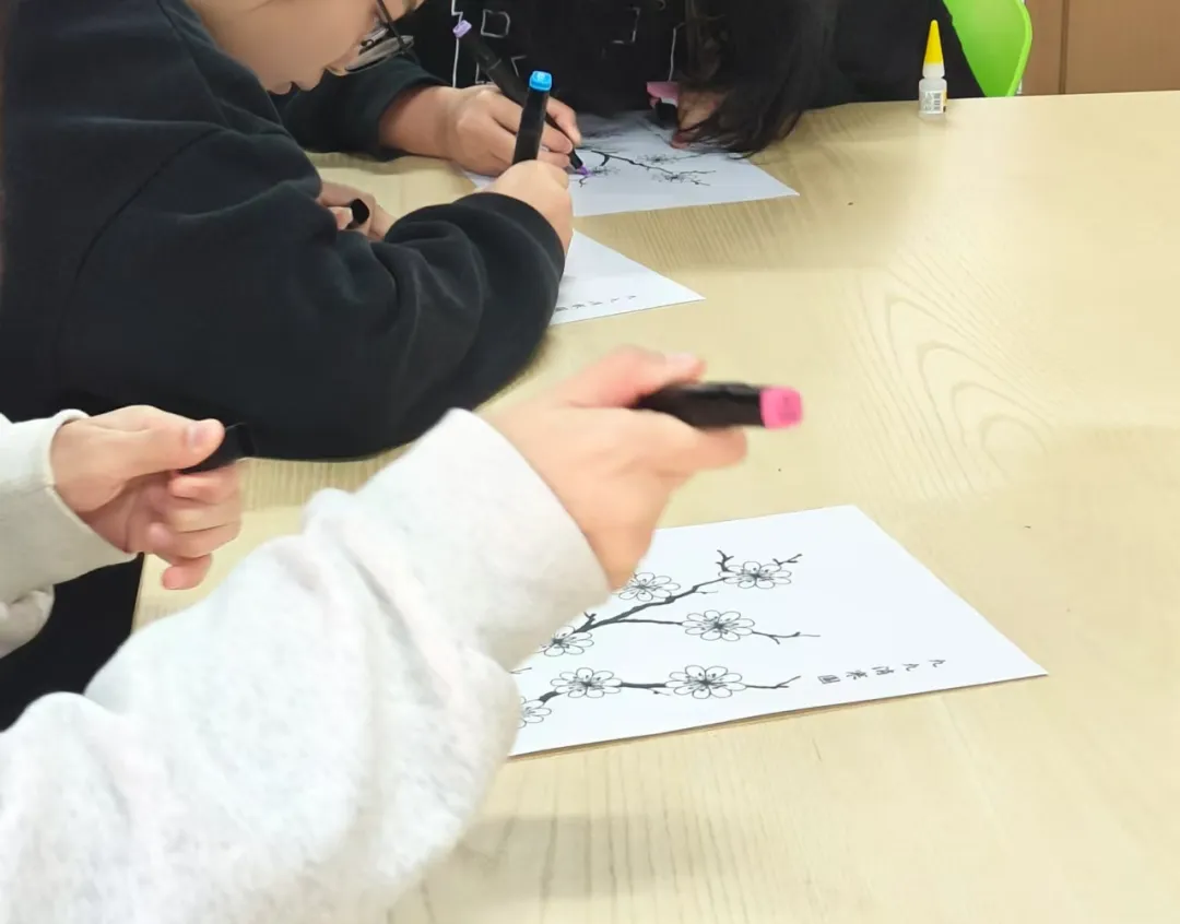 数九区域,一幅幅精美的九九消寒图吸引着众人目光。参与者们依照传统习俗,或填涂梅花花瓣,或书写笔画,在一笔一划中感受着时光的流转与冬日的韵味,也体悟着古人对自然变化的细腻观察与诗意记录。