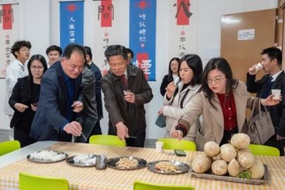 甜水萝卜是新会区崖门镇农业品牌化、产业化的杰出代表,具有独特的品质、卓越的口感和深厚的文化底蕴。在“甜蜜品鉴·萝卜盛宴”活动现场,同学们引领校领导参观了启超书院共融炊饮坊。经过负责烹饪的同学细致入微的操作展示,校领导与同学们共同品鉴了香甜软糯的萝卜佳肴。浓郁的肉香与萝卜的清甜完美交融,令在场众人无不交口称赞。