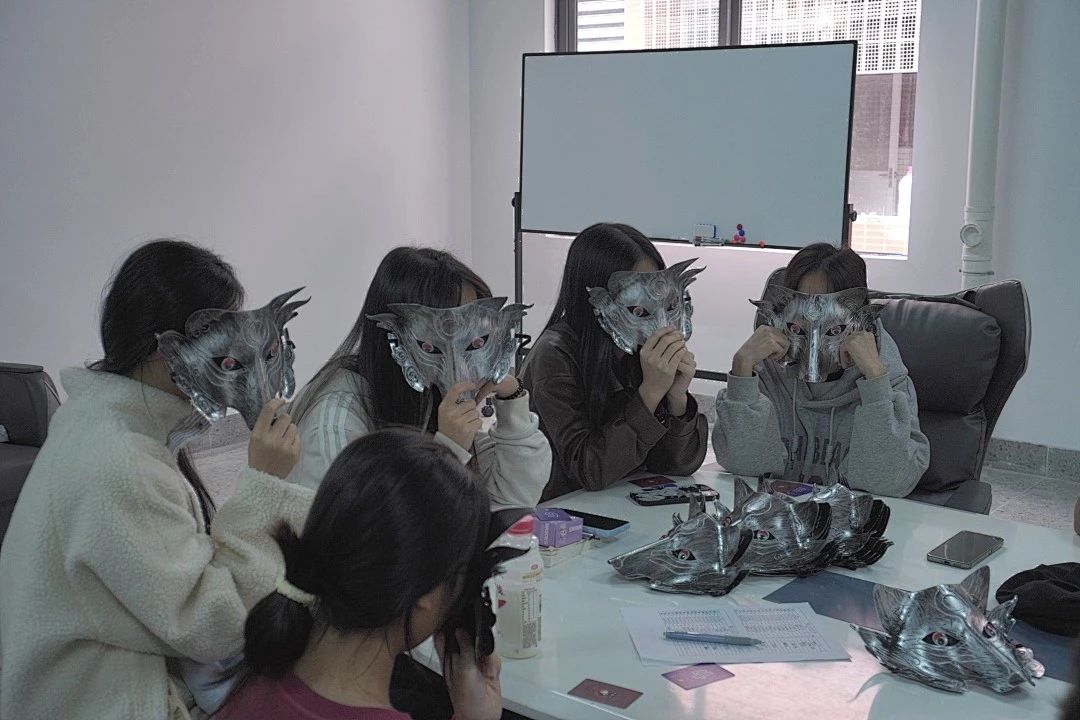 相聚知行推理馆,共玩欢乐狼人杀。随着“夜幕”的降临,紧张的氛围骤然笼罩全场。狼人于黑暗之中悄然布局,神职人员则时刻严阵以待,以捍卫正义为己任,平民们则谨慎地探寻着真相的蛛丝马迹。每一次的发言、每一轮的决策,皆牵动着阵营的胜负命运,心跳随着游戏的推进而愈发急促,同学们无不深深沉浸于这场智谋与心理的较量之中。