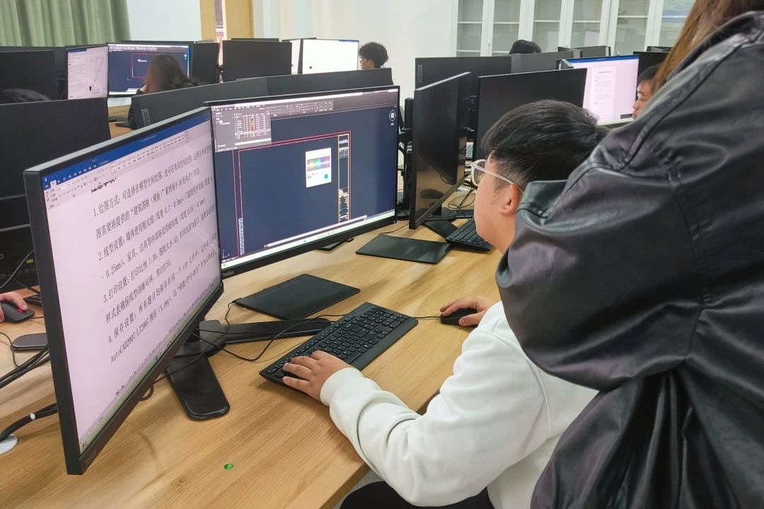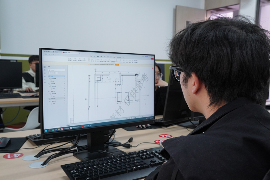 比赛现场,只见选手们目不转睛地盯着电脑屏幕,手指在键盘和鼠标上快速舞动,熟练地运用CAD软件绘制着精确而复杂的建筑图纸。他们时而专注思考,时而迅速操作,每一个线条、每一个标注都凝聚着他们的专业素养和精心构思,展现出扎实的基本功和高超的制图技巧。现场安静而紧张,只有键盘敲击声和鼠标点击声交织在一起,仿佛是一场知识与技能的交响曲。