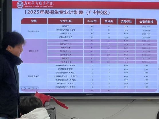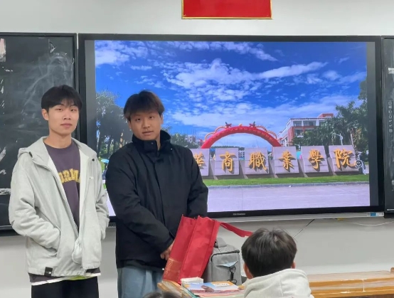 活动开始时,两位同学借助精心制作的 PPT,配合着极具吸引力的招生宣传片,为学弟学妹们生动地呈现了广州华商职业学院的全貌。在介绍过程中,他们着重突出了华职在科研探索方面所取得的成就,以及在教育教学领域所展现出的雄厚实力,力求让在场的每一位同学都能深切感受到学校的独特魅力,进而吸引更多优秀生源报考该校。